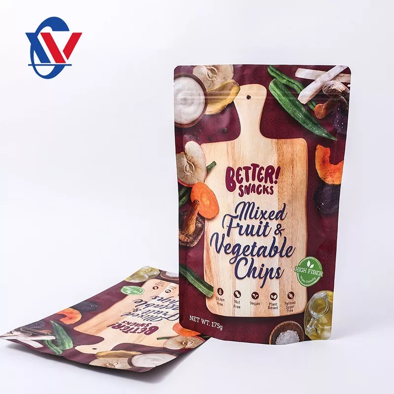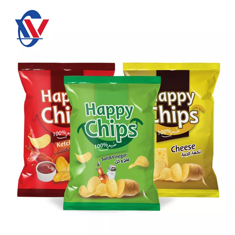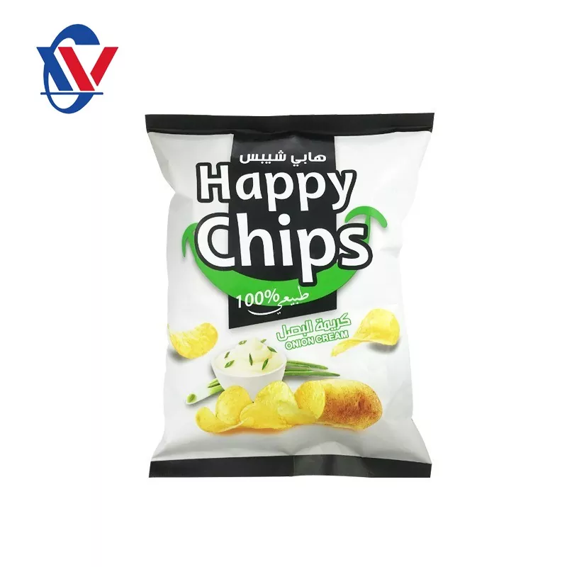 Kartoffel-Chip-Snack-Verpackungsbeutel verwenden normalerweise mehrschichtige Verbundwerkstoffe. Die äußerste Ebene ist eine gedruckte Ebene zum Anzeigen von Marken- und Produktinformationen. Die mittlere Schicht ist dafür verantwortlich, Luft und Feuchtigkeit zu blockieren, um sicherzustellen, dass die Kartoffelchips lange Zeit knusprig bleiben. Die innere Schicht steht in direktem Kontakt mit Lebensmitteln und muss die Standards für die Lebensmittelsicherheit erfüllen. Darüber hinaus verwenden einige High-End-Verpackungsbeutel auch umweltfreundliche Materialien wie recycelbare PP-Materialien und rauchlose und geruchlose PE-Materialien, und die innere Schicht verwendet umweltfreundliche Baumwolle, um Öl zu absorbieren und Lebensmittel zu schützen.